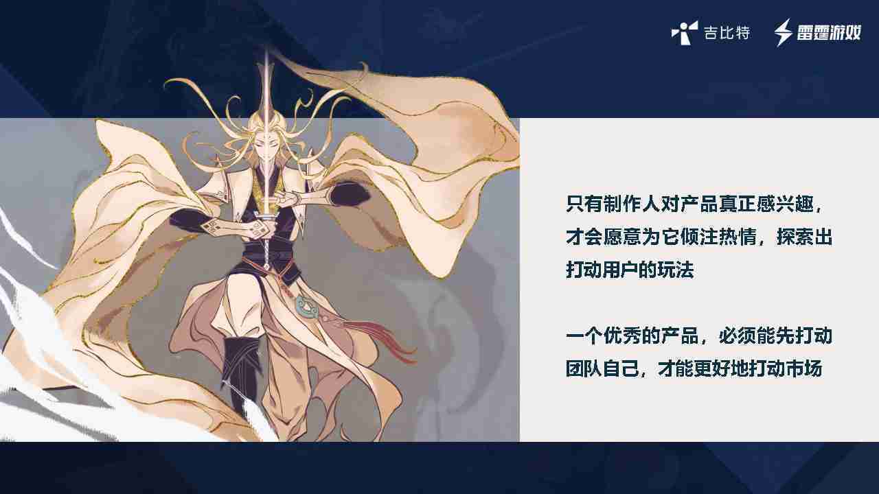 以《一念逍遥》为例,,,,2018年公司创始人萌生想做修仙题材的放置游戏的想法,,于是找了两位同事讨论了一下产品的概念,,,这两位现在是项目的制作人,,,花了三周的时间把原型做出来,,,并且确定最初的战斗原型,,,,以及整个养成的节奏。。通过几次版本迭代验证后,,,也确定后面的内容应该怎么拓展,,最终在一年左右时间这个项目上线了。。。。当时我们内部有同事看到《⼀念逍遥》上线,,认为品质还不够完美,,但是整体营收还不错。。就在想那是不是以后我们都做这样的产品????但实际这是错误的认知,,,,我们内部不是这么看的。。。游戏在那个时间点上市,,,因为有些市场的考量和营销点的考虑,,,并不是希望所有项目都是这样。。。。如果它有更好的契机,,,,希望它可以做得更大、、、、更好,,,,希望在内核玩法确定之后,,,外围投入可以越大越好,,,,所以后面的几个项目是往这个思路上做。。。